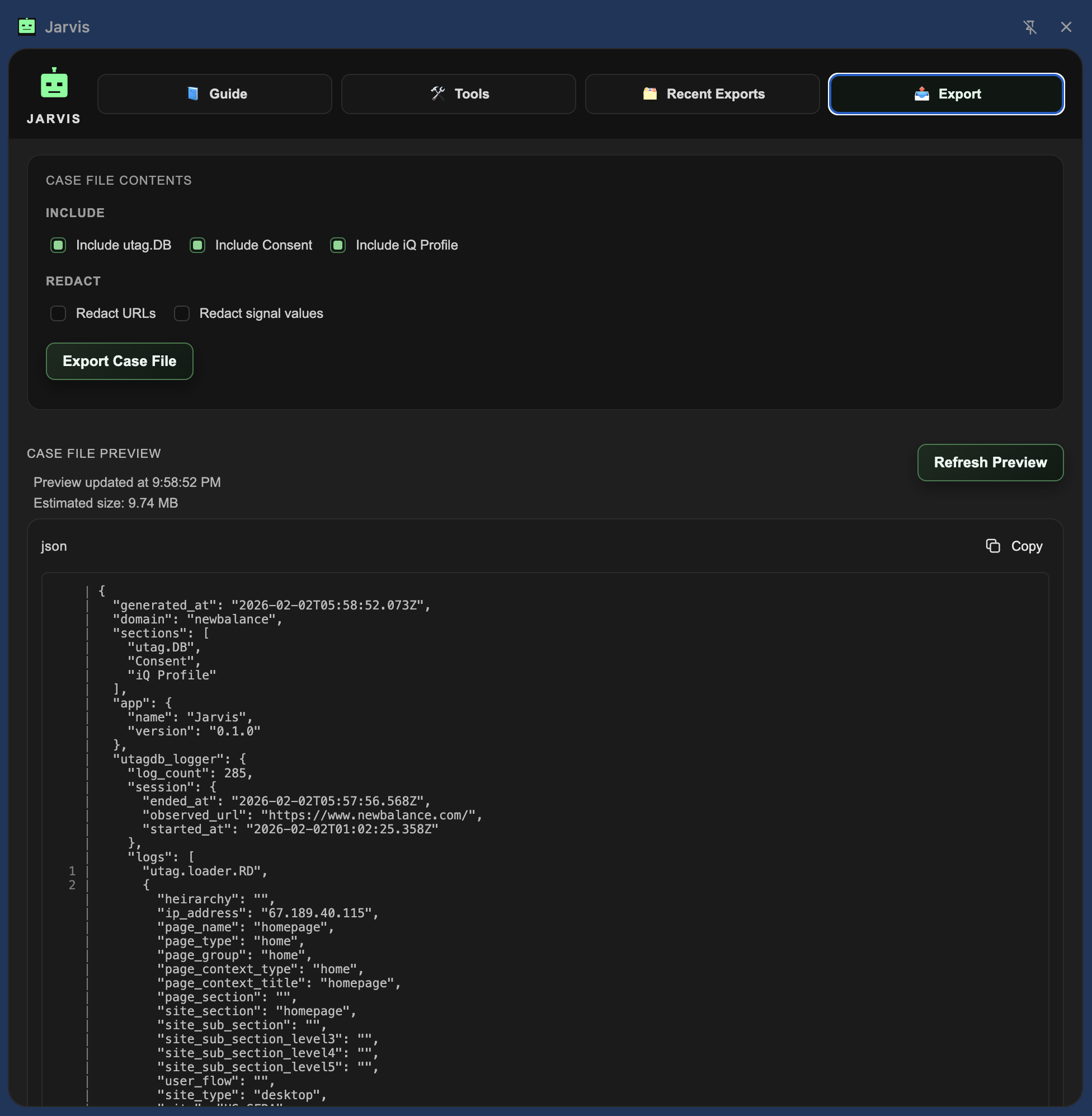 A Chrome MV3 extension for Tealium debugging that captures utag.DB logs in the page context, monitors consent state, and exports a single case file for analysis.